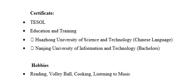 國(guó)籍: 巴基斯坦 求職意向: 教師
