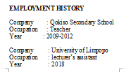 國籍: 南非 求職意向: 教師