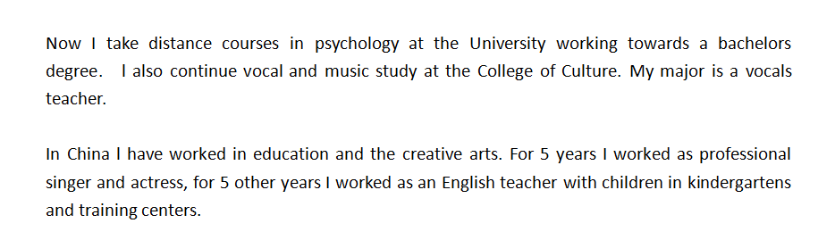 國籍: 俄羅斯 求職意向: 教師