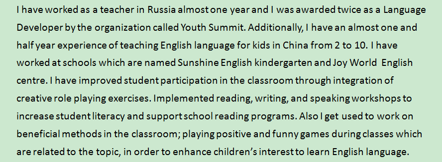 國(guó)籍: 俄羅斯 求職意向: 教師