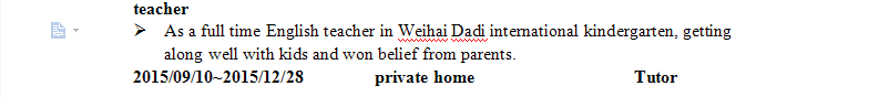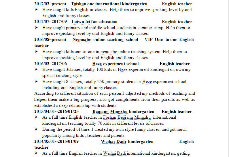 在濟(jì)南本科,TESOL,學(xué)生簽(現(xiàn)在回國續(xù)簽證),發(fā)音不錯(cuò),在南非生活很多年,會(huì)說一點(diǎn)漢語,工簽文件已經(jīng)認(rèn)證,求職地不限(濟(jì)南最好),1月初到崗,工作積極,以前在2個(gè)學(xué)校教學(xué)分別都獲得過優(yōu)秀教師獎(jiǎng)狀。 |