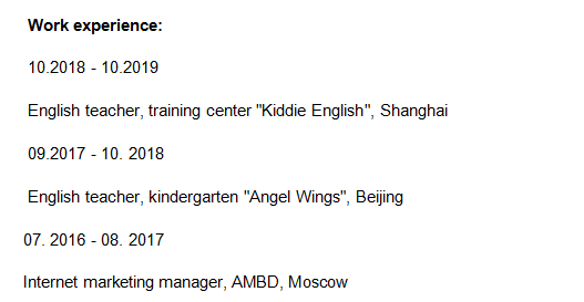 藍彧+俄羅斯美女+本科+兩年中國教學經驗(北京和上海)+商務簽先到崗(2020.02到期),后期辦理工簽(工簽資料齊全)+求職上海+目前在上海,12.12到崗~發(fā)音很好 |