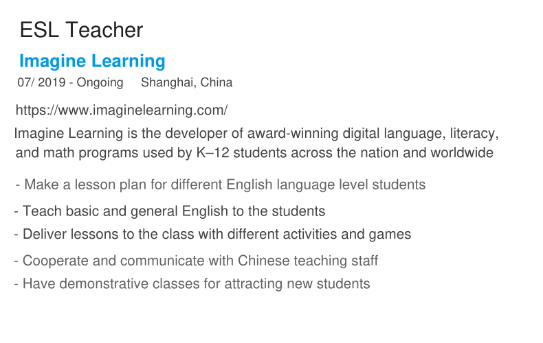 自我介紹,介紹教學(xué)經(jīng)歷,中國有一年多的教學(xué)經(jīng)驗。學(xué)歷, 曾學(xué)習(xí)美式英語,有自己的教學(xué)優(yōu)勢。喜歡中國,喜歡在中國教學(xué)---發(fā)音挺不錯的