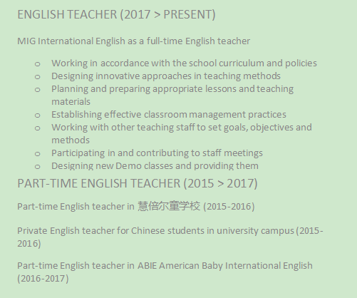 碩士 教學經(jīng)驗4年以上,求職西安,自理學生簽,12-13不需要住宿,1月工作,發(fā)音好 |