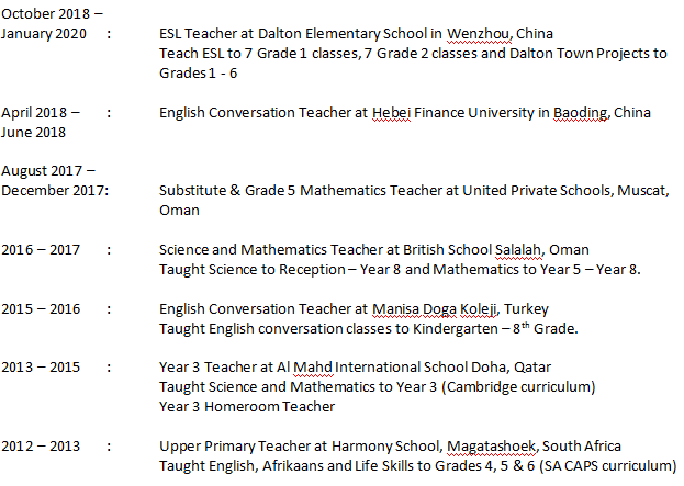 國(guó)籍: 英國(guó) 求職意向: 教師