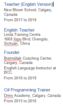 面試詳情:『成都』的用人單位可約該外教面試