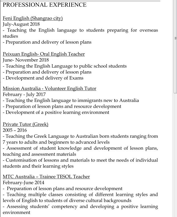 國籍: 其他 求職意向: 教師