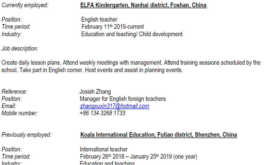 國籍: 其他 求職意向: 教師