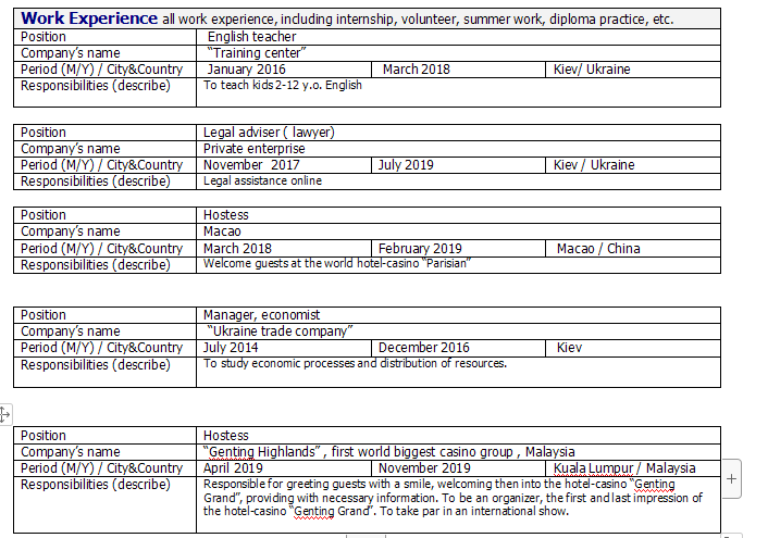 烏克蘭,在烏克蘭,碩士,發(fā)音不錯,性格開朗,喜歡小朋友求職地不限(北京武漢更好),旅游簽(30天)工簽材料已經認證,盡快到崗 |