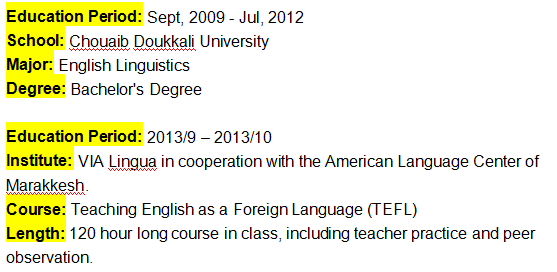 國(guó)籍: 摩洛哥 求職意向: 教師