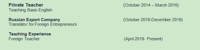國籍: 俄羅斯 求職意向: 教師