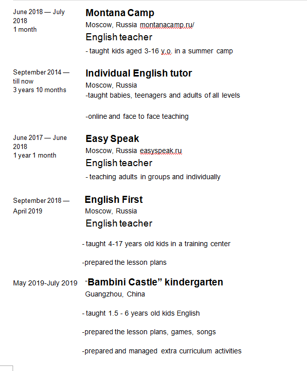 國(guó)籍: 俄羅斯 求職意向: 教師