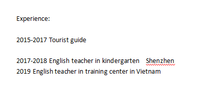 國籍: 塞爾維亞 求職意向: 教師