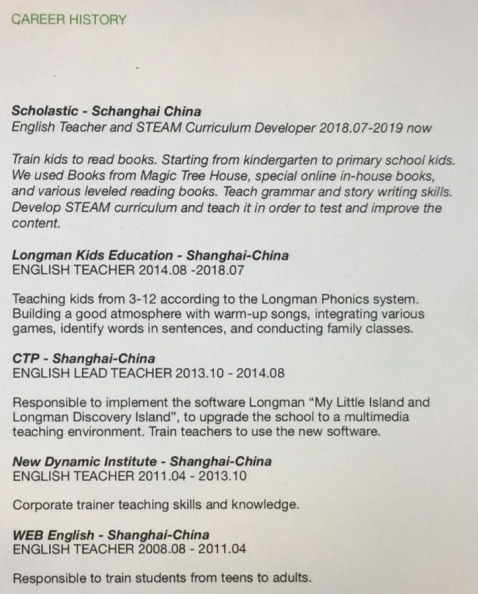 FELIX+克羅地亞男+英語(yǔ)教師專業(yè)本科,有TESOL+自理工簽+求職上海,或附近開(kāi)車兩小時(shí)到的城市+目前在上海,可盡快到~發(fā)音超棒,10年教學(xué)經(jīng)驗(yàn)。20k(說(shuō)現(xiàn)在25k) |