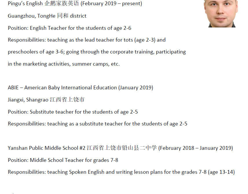 國(guó)籍: 俄羅斯 求職意向: 教師