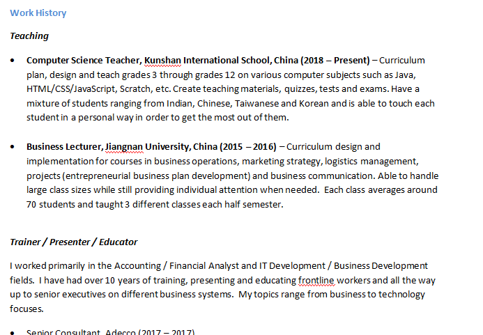 Andre+美國出生的中國人+碩士+美國護(hù)照,教學(xué)工簽轉(zhuǎn)聘(2024年到期)+求職廣東任何城市+目前在江蘇昆山,2月份到崗~可教英語,數(shù)學(xué),經(jīng)濟(jì)學(xué)和計算機(jī),小學(xué),中學(xué),大學(xué)都有教學(xué)經(jīng)驗 |