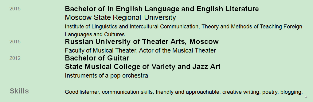 國籍: 俄羅斯 求職意向: 教師