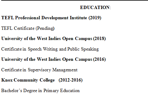 國(guó)籍: 津巴布韋 求職意向: 教師