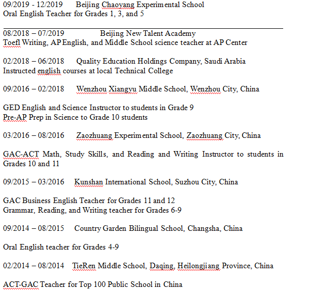 美國, 亞裔美國人, 本科---威廉帕特森大學(xué) 心理學(xué)專業(yè) 工簽轉(zhuǎn)聘, 即可可以轉(zhuǎn)聘, 求職不限制, 公立學(xué)校優(yōu)先考慮, 在北京, 山東 蘇州, 等地有公立學(xué)校經(jīng)驗, tefl 經(jīng)驗十分豐富。有商務(wù)英語經(jīng)驗。 求職公立學(xué)校職位---------------不限制城市, 哪里都可以。 |