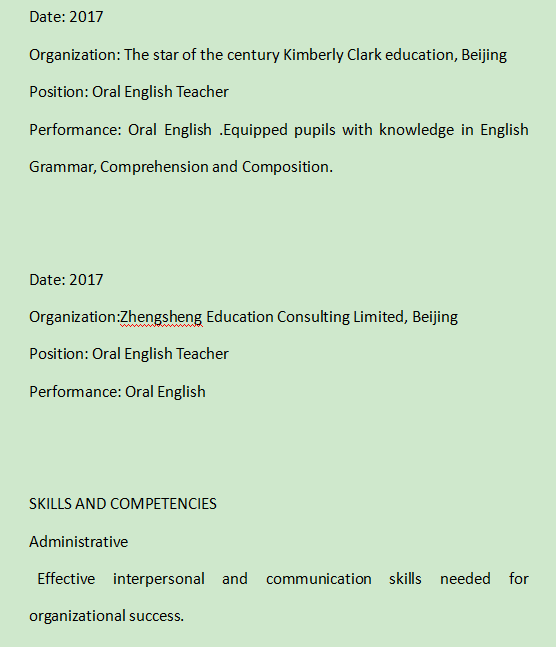 加拿大取得本科,英語教學專業(yè),蒙臺梭利和早教學習經(jīng)驗, 有TESOL, 現(xiàn)于北京學生簽,工簽資料準備中,求職北京 ,發(fā)音清晰 |