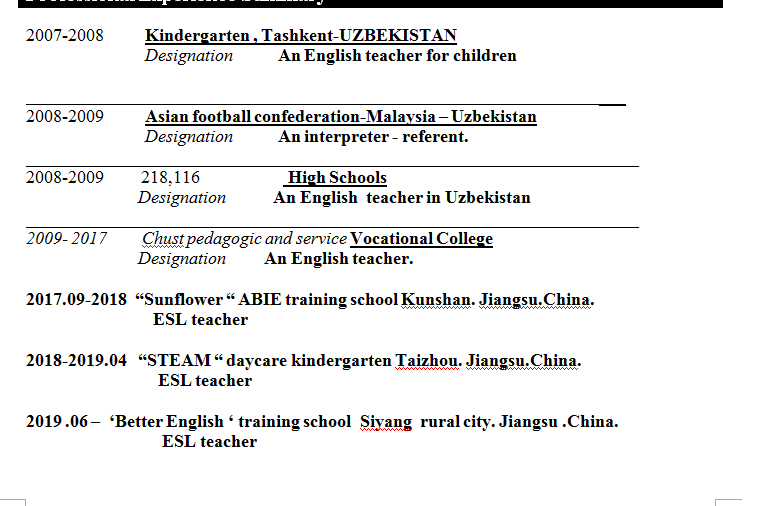 工作經(jīng)驗豐富,求職江蘇省職位,隨時上崗。