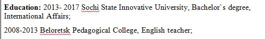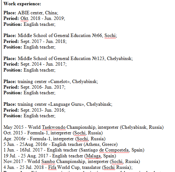 國(guó)籍: 俄羅斯 求職意向: 教師