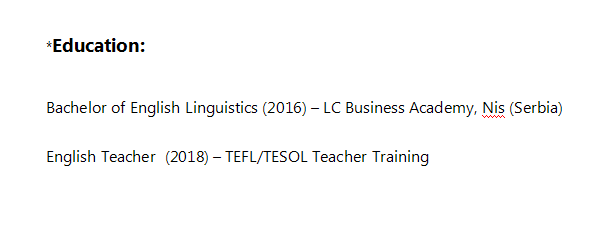 國籍: 塞爾維亞 求職意向: 教師