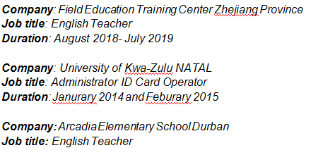 國籍: 未知 求職意向: 教師
