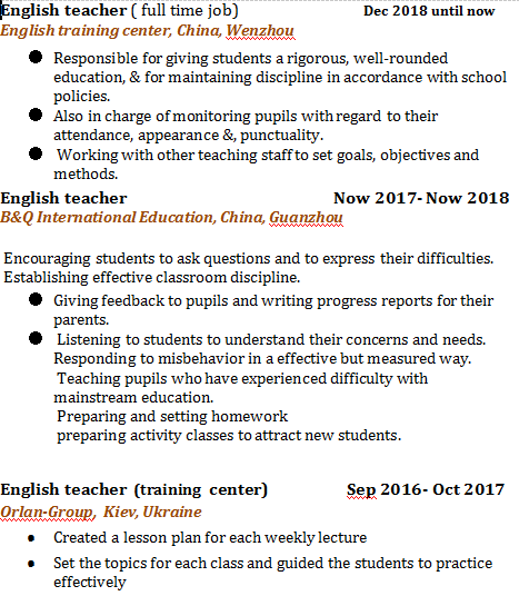 國籍: 烏克蘭 求職意向: 教師