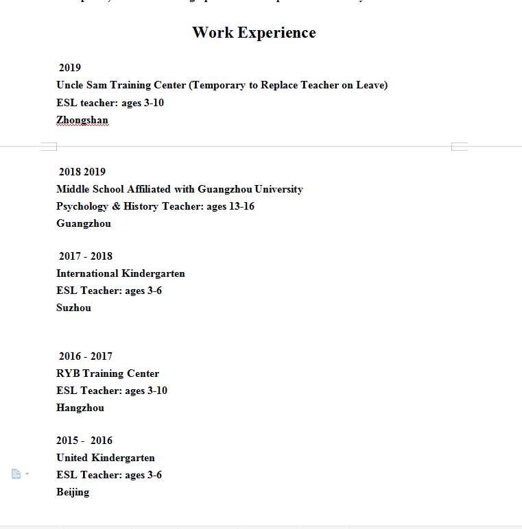 在中國有多年教學經(jīng)驗, 有愛心責任感 |