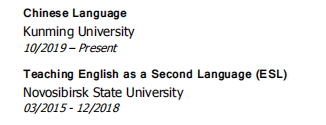 國(guó)籍: 俄羅斯 求職意向: 教師