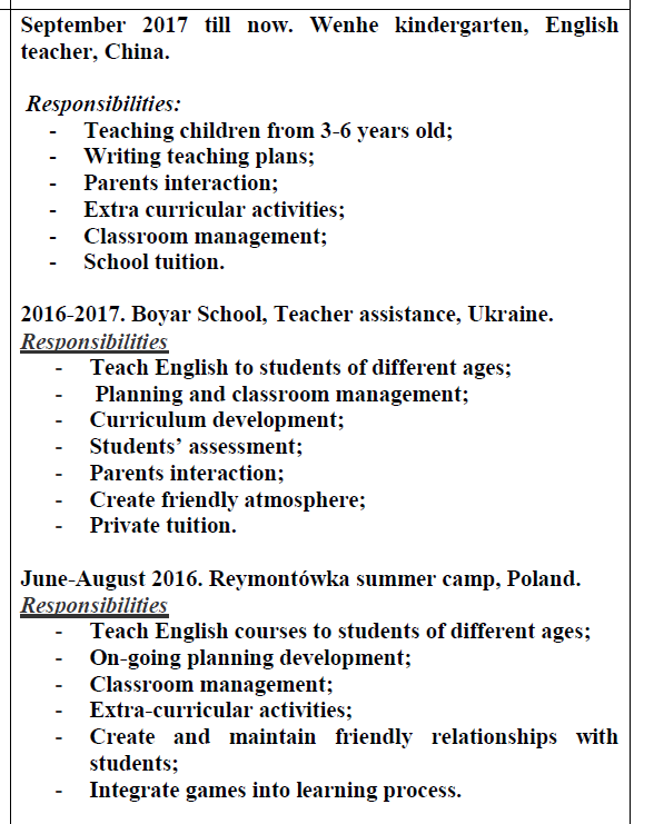 國(guó)籍: 烏克蘭 求職意向: 教師