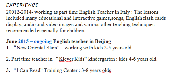 國籍: 亞美尼亞 求職意向: 教師