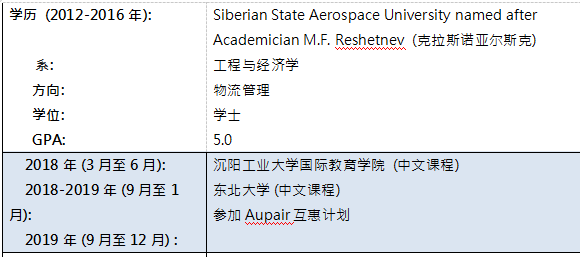 Iuliia+俄羅斯美女+本科+自理商務(wù)簽(2020.03到期)+求職北京,沈陽(yáng),南京或者上海等+目前回國(guó)度假,可盡快到崗 |