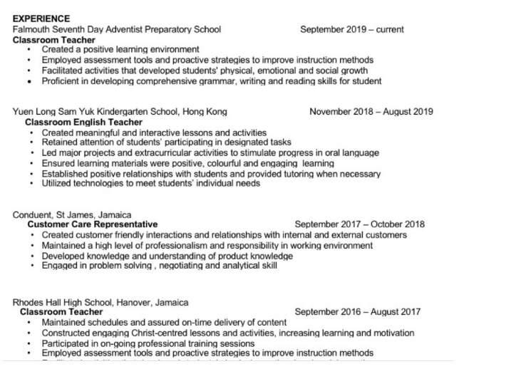 外教的工作經(jīng)歷