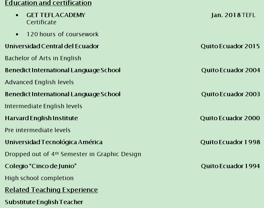 國籍: 牙買加 求職意向: 教師