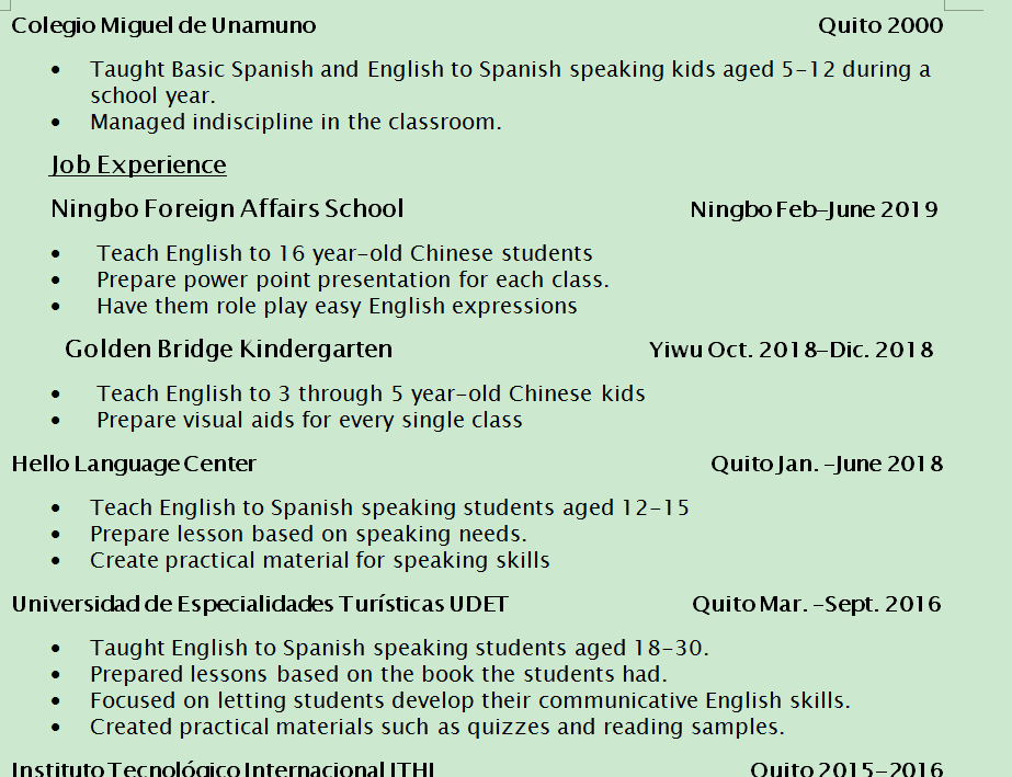 國籍: 其他 求職意向: 教師