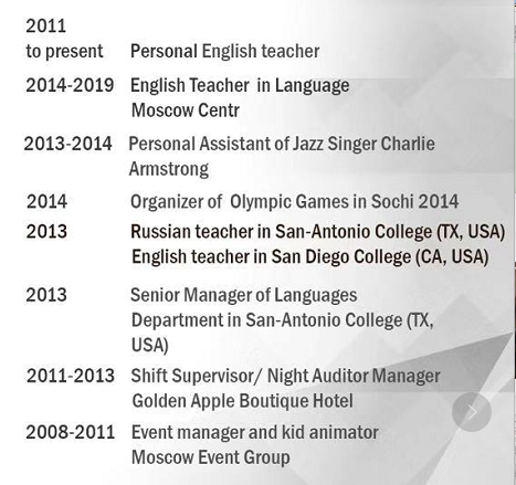 俄羅斯出生,美國(guó)長(zhǎng)大,母語(yǔ)發(fā)音,經(jīng)驗(yàn)8年以上,商務(wù)簽,求職廣東省,考慮其他城市,會(huì)唱歌,跳爵士舞 |