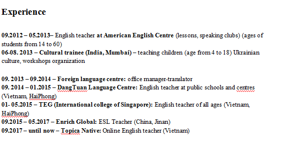 國籍: 俄羅斯 求職意向: 教師