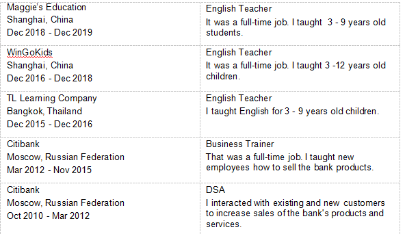 國籍: 其他 求職意向: 教師