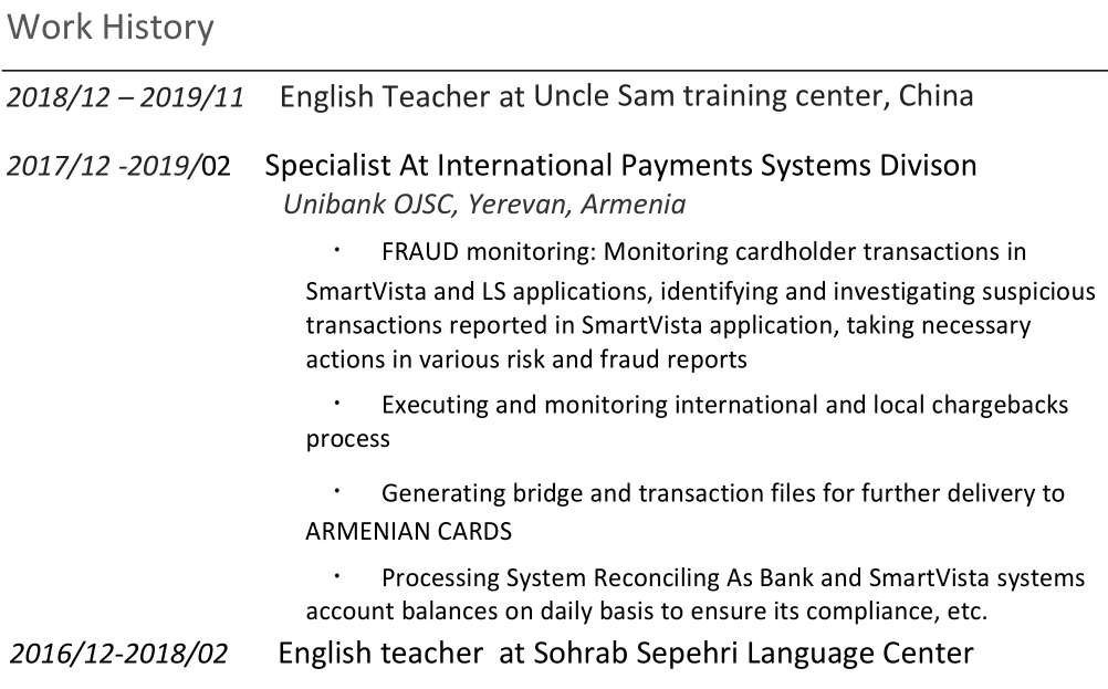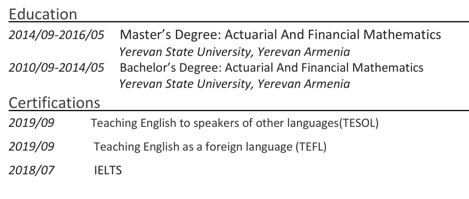 國(guó)籍: 亞美尼亞 求職意向: 教師