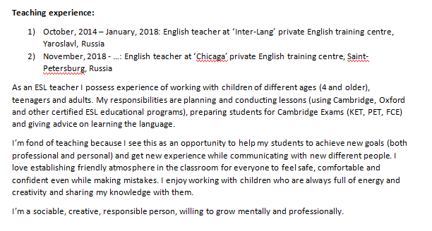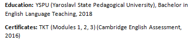 Nadia Sibirtseva+俄羅斯女+英語教師專業(yè)本科+自理商務(wù)簽先到崗(2個(gè)月),工簽資料齊全(辦理工簽)+求職天津,成都,沈陽等中型城市+目前在本國,2月初到崗~發(fā)音很棒??! |