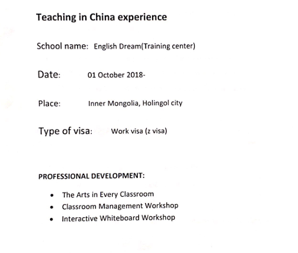 國籍: 其他 求職意向: 教師