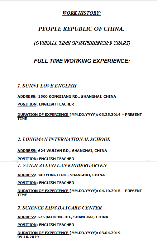 國(guó)籍: 塞爾維亞 求職意向: 教師