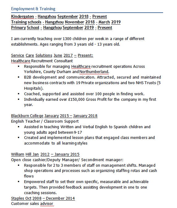 國籍: 英國 求職意向: 教師