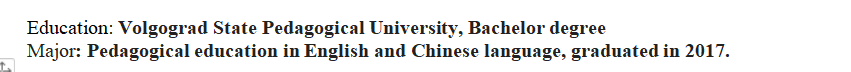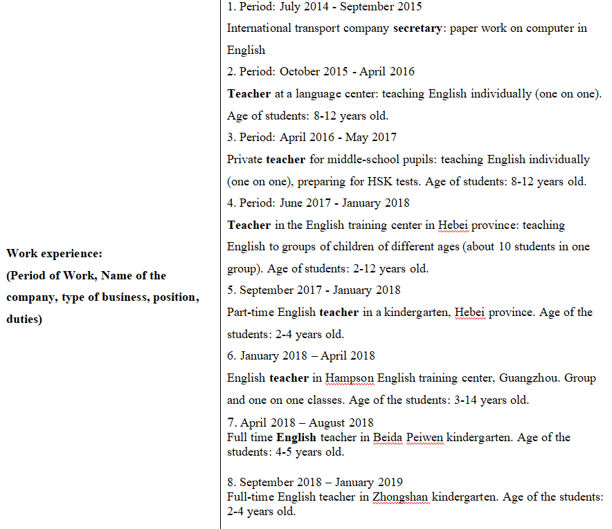 俄羅斯, 本科, 英語專業(yè), tesol , 在中山 有經(jīng)驗, 求職中山職位。 也有工作簽證資料 |