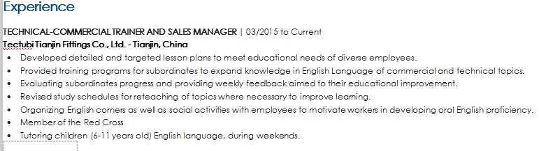 國籍: 加拿大 求職意向: 教師