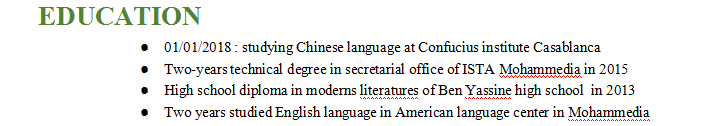 國籍: 摩洛哥 求職意向: 教師