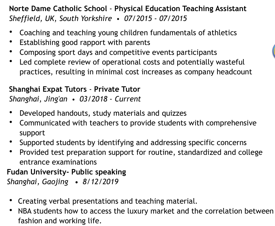 面試詳情:『上海靜安和徐家匯』的用人單位可約該外教面試