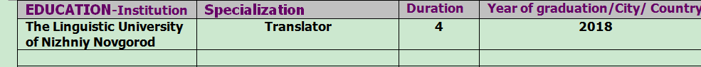 國籍: 俄羅斯 求職意向: 教師